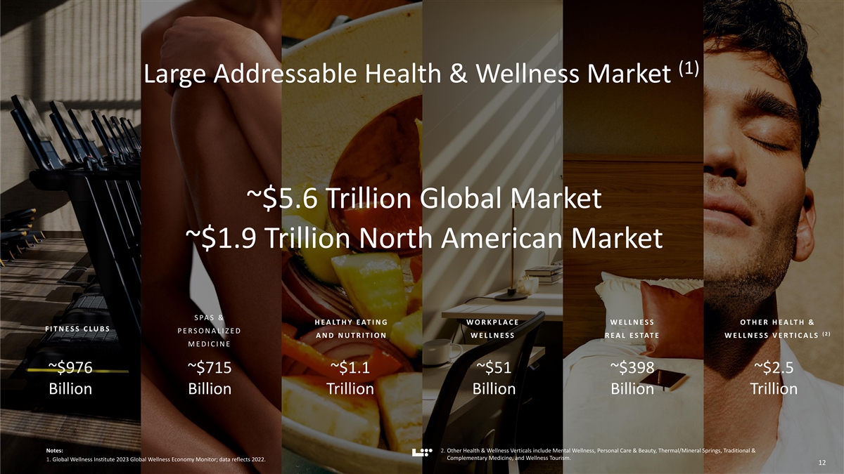 (1) Large Addressable Health & Wellness Market ~$5.6 Trillion Global Market ~$1.9 Trillion North American Market S PA S & H E A LT H Y E AT I N G W O R K P L A C E W E L L N E S S O T H E R H E A LT H & F I T N E S S C L U B S P E R S O N A L I Z E D ( 2 ) A N D N U T R I T I O N W E L L N E S S R E A L E S TAT E W E L L N E S S V E R T I C A L S M E D I C I N E ~$976 ~$715 ~$1.1 ~$51 ~$398 ~$2.5 Billion Billion Trillion Billion Billion Trillion Notes: 2. Other Health & Wellness Verticals include Mental Wellness, Personal Care & Beauty, Thermal/Mineral Springs, Traditional & Complementary Medicine, and Wellness Tourism. 1. Global Wellness Institute 2023 Global Wellness Economy Monitor; data reflects 2022. 12 12 81nidZpGqzkSDMpD