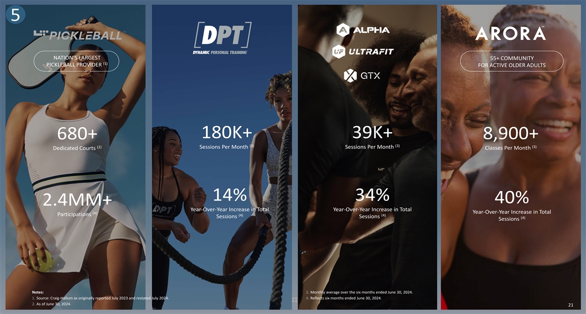 5 NATION’S LARGEST 55+ COMMUNITY (1) PICKLEBALL PROVIDER FOR ACTIVE OLDER ADULTS 180K+ 39K+ 8,900+ 680+ (3) (3) (2) (3) Sessions Per Month Sessions Per Month Dedicated Courts Classes Per Month 14% 34% 40% 2.4MM+ Year-Over-Year Increase in Total Year-Over-Year Increase in Total Year-Over-Year Increase in Total (4) Participations (4) (4) Sessions Sessions (4) Sessions Notes: 3. Monthly average over the six months ended June 30, 2024. 1. Source: Craig-Hallum as originally reported July 2023 and restated July 2024. 4. Reflects six months ended June 30, 2024. 2. As of June 30, 2024. 21 21 81nidZpGqzkSDMpD