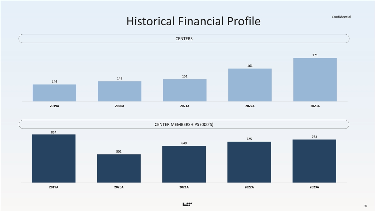 Confidential Historical Financial Profile CENTERS 171 161 151 149 146 2019A 2020A 2021A 2022A 2023A CENTER MEMBERSHIPS (000’S) 854 763 725 649 501 2019A 2020A 2021A 2022A 2023A 30 81nidZpGqzkSDMpD