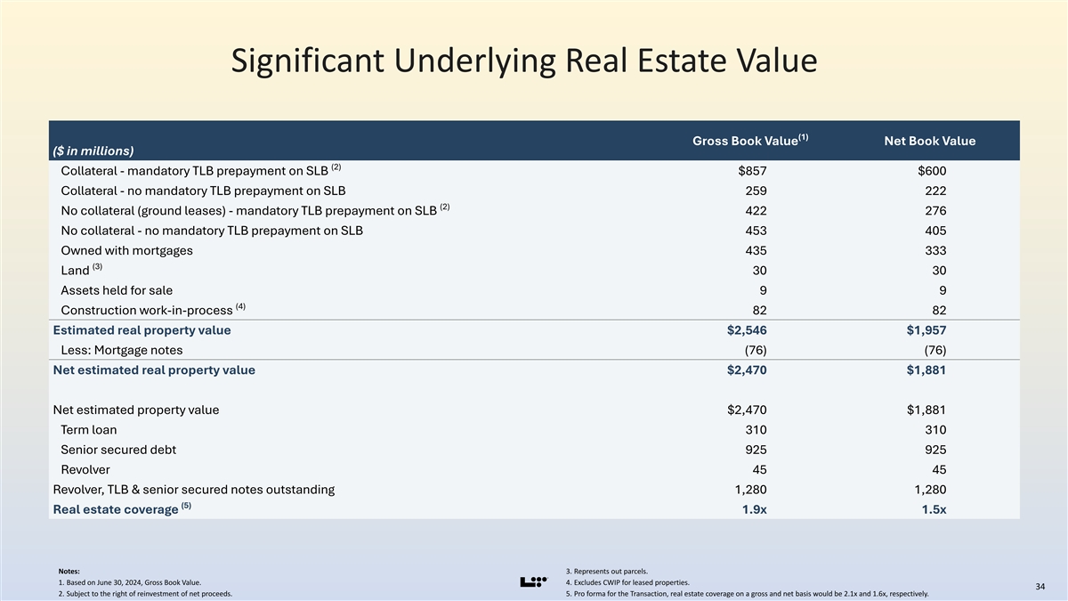 Significant Underlying Real Estate Value (1) Gross Book Value Net Book Value ($ in millions) (2) Collateral - mandatory TLB prepayment on SLB $857 $600 Collateral - no mandatory TLB prepayment on SLB 259 222 (2) No collateral (ground leases) - mandatory TLB prepayment on SLB 422 276 No collateral - no mandatory TLB prepayment on SLB 453 405 Owned with mortgages 435 333 (3) Land 30 30 Assets held for sale 9 9 (4) Construction work-in-process 82 82 Estimated real property value $2,546 $1,957 Less: Mortgage notes (76) (76) Net estimated real property value $2,470 $1,881 Net estimated property value $2,470 $1,881 Term loan 310 310 Senior secured debt 925 925 Revolver 45 45 Revolver, TLB & senior secured notes outstanding 1,280 1,280 (5) Real estate coverage 1.9x 1.5x Notes: 3. Represents out parcels. 1. Based on June 30, 2024, Gross Book Value. 4. Excludes CWIP for leased properties. 34 2. Subject to the right of reinvestment of net proceeds. 5. Pro forma for the Transaction, real estate coverage on a gross and net basis would be 2.1x and 1.6x, respectively. 81nidZpGqzkSDMpD