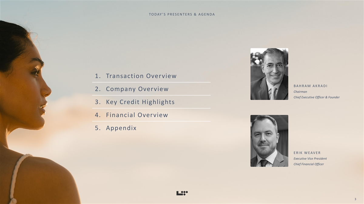 T O D AY ’ S P R E S E N T E R S & A G E N D A 1. Transaction Overview B A H R A M A K R A D I 2. Company Overview Chairman Chief Executive Officer & Founder 3. Key Credit Highlights 4. Financial Overview 5. Appendix E R I K W E AV E R Executive Vice President Chief Financial Officer 3 3 81nidZpGqzkSDMpD